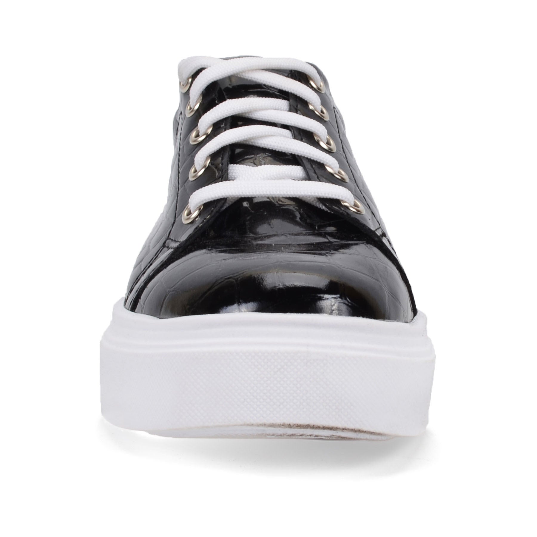 Step into comfort with the Agata Afrek Black Sneakers.Genuine Leather, These chic sneakers feature a striking black croc pattern, adding a touch of sophistication to your casual look in winter, spring, summer or fall. The clean white platform sole provides a comfortable lift, while the contrasting white laces ensure a secure fit. Perfect for pairing with shorts, skirts, jeans or dresses, these sneakers are your go-to for effortless style and all-day comfort. Elevate your everyday outfits with the Agata Afrek Black Sneakers, a must-have addition to your wardrobe.