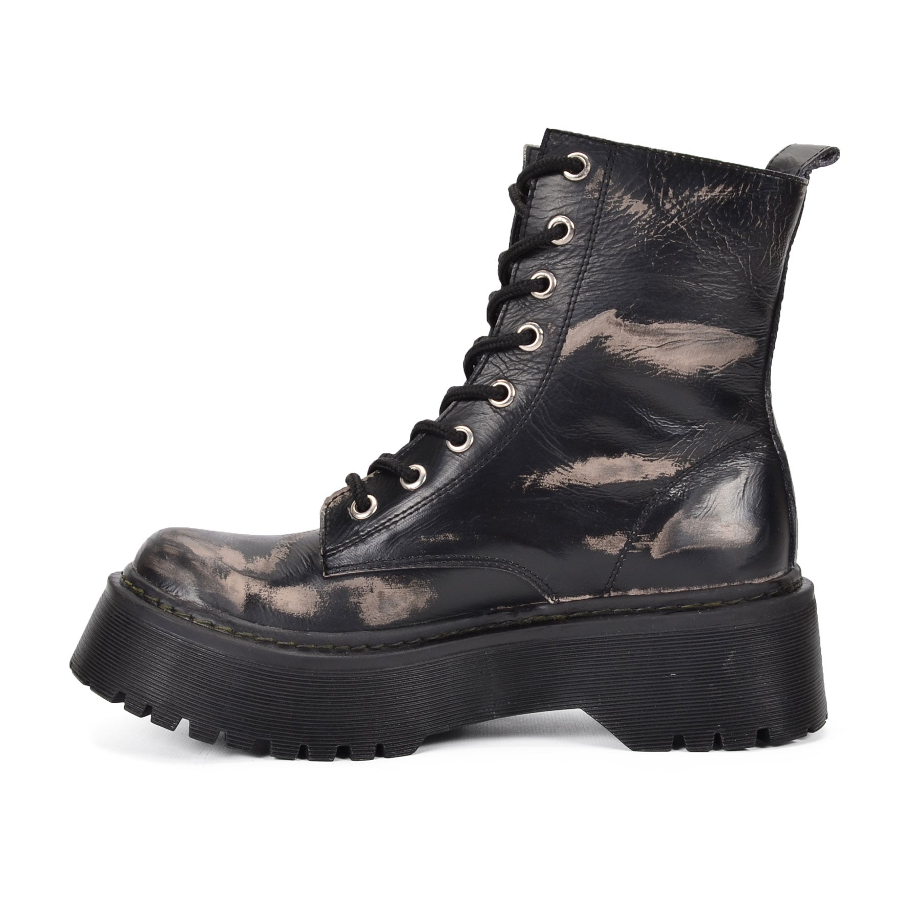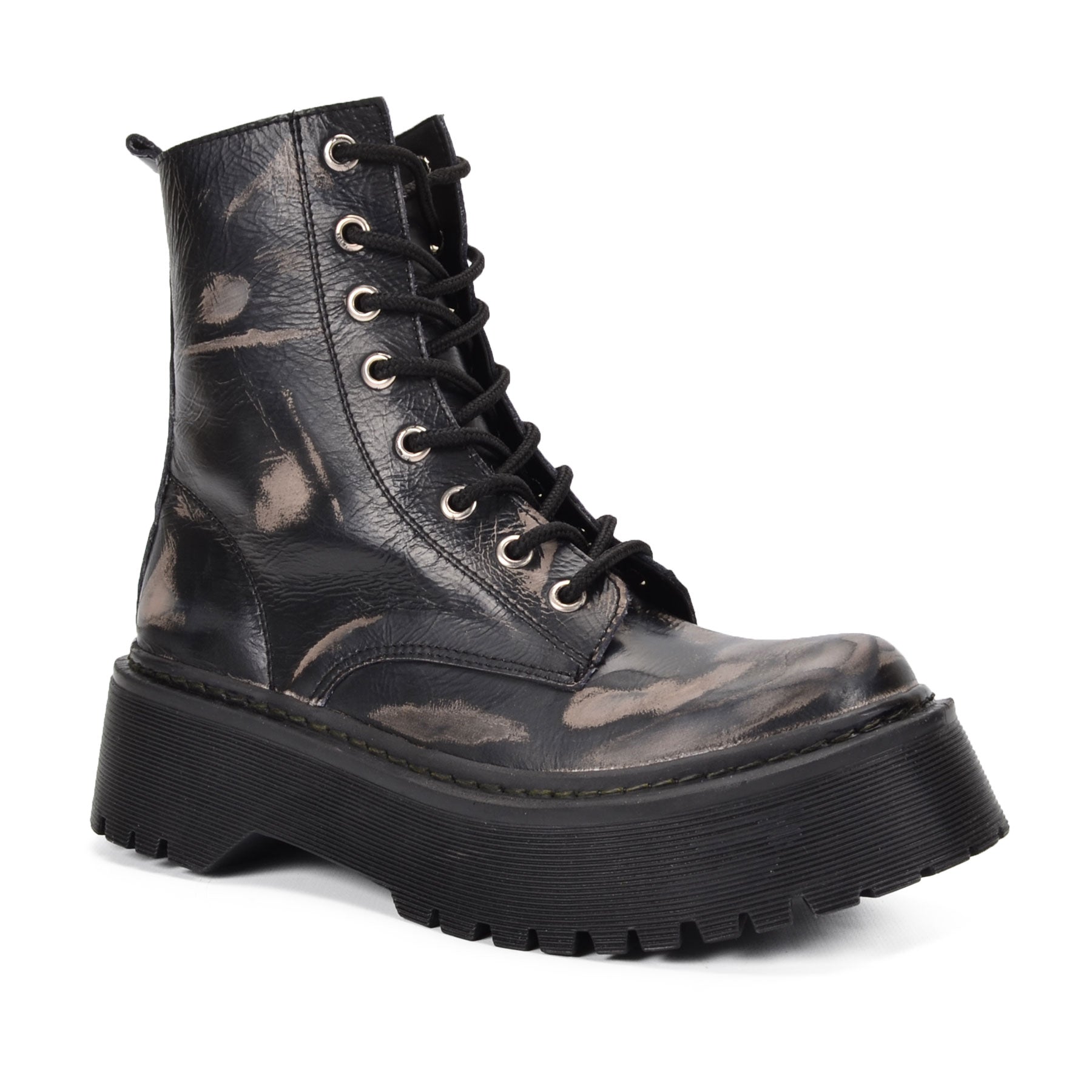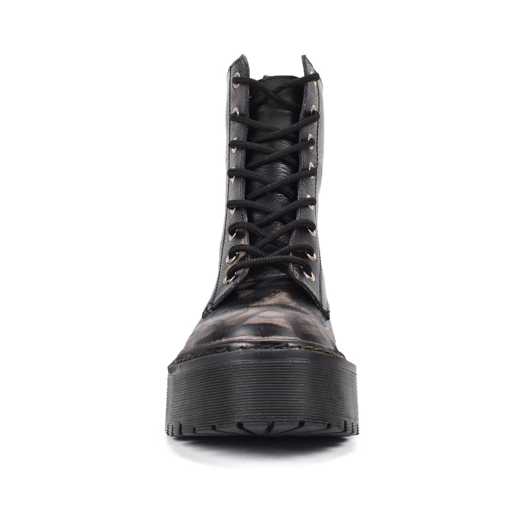 Charm, our best-selling distressed black combat boots are a bold addition to your year-round wardrobe. Made from high-quality Genuine leather with a worn-in look, they feature a lace-up front and chunky platform sole for both style and comfort. Perfect for adding an edgy touch to winter, spring, summer or fall outfits, they pair well with shorts, skirts, or dresses, making them a versatile and fashionable choice for any occasion.