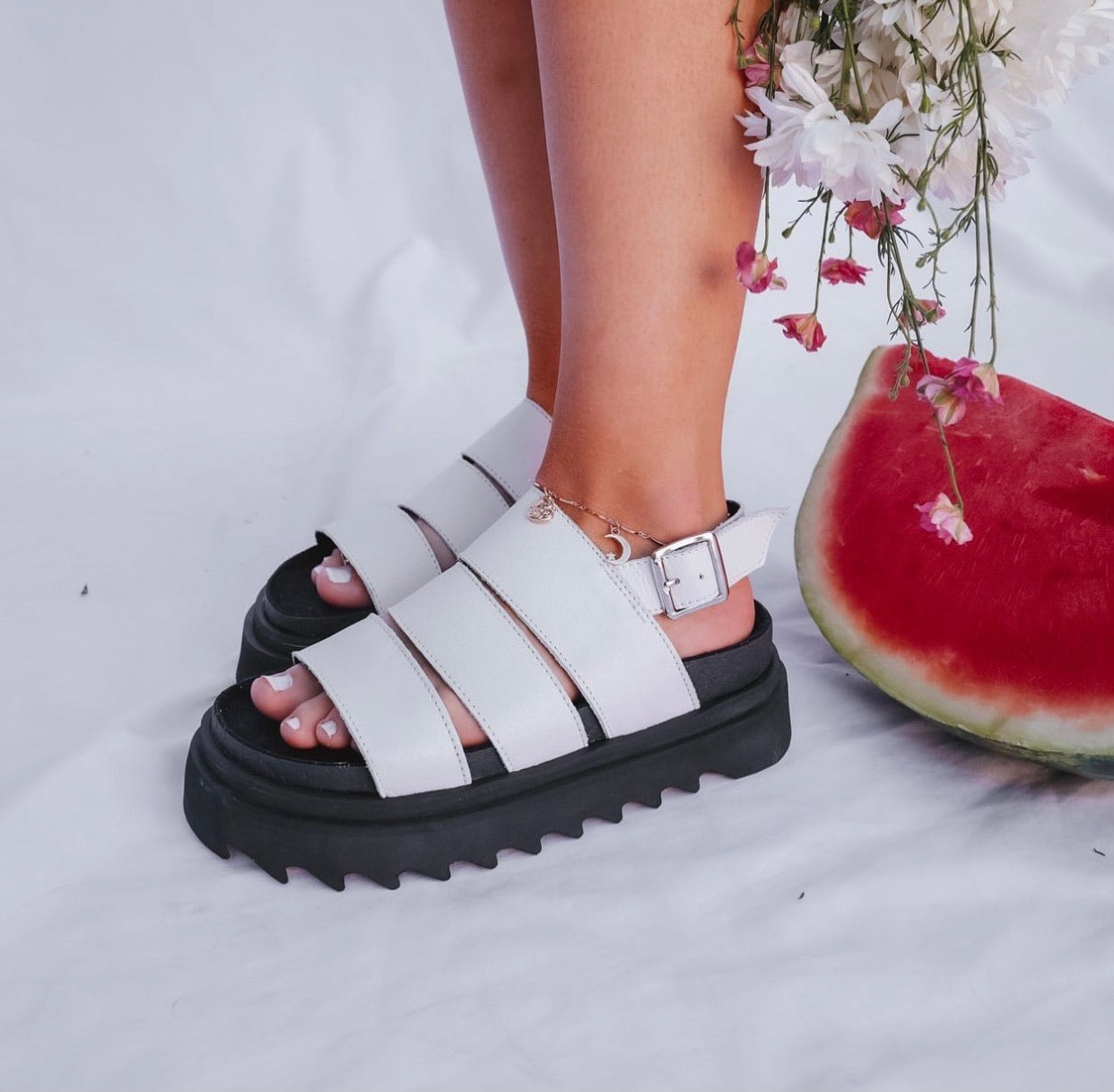 The Jaiden platform sandals are a best-seller for a reason! Combining glossy patent and textured Genuine leather straps. they offer a sophisticated yet edgy look. The adjustable ankle strap ensures a secure fit, while the chunky, serrated platform sole provides height and comfort. Perfect for summer trips, these versatile sandals pair well with everything from casual shorts to stylish dresses, making them a chic addition to any wardrobe.