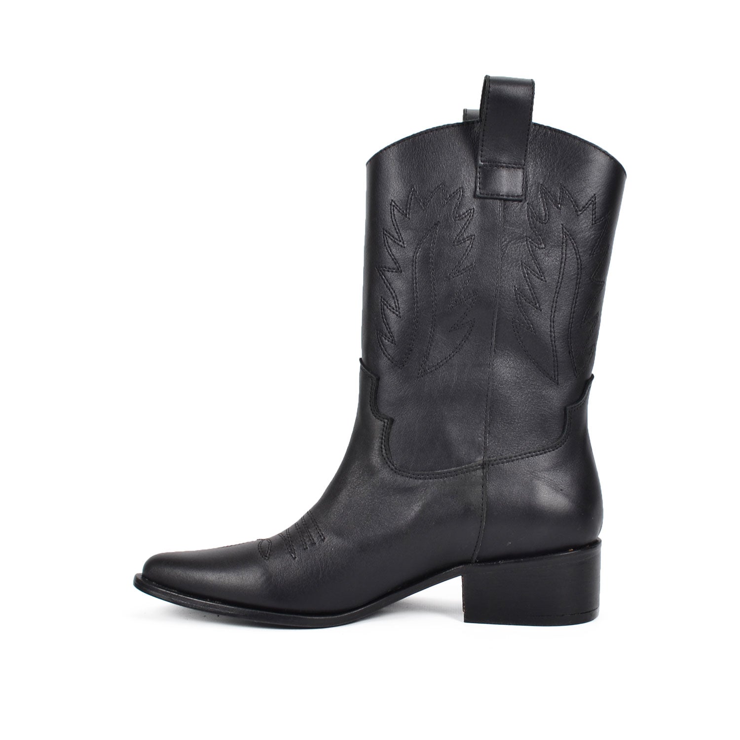 Add a classic western flair to your wardrobe with the Juana Black Genuine Leather Cowgirl boots. Crafted with genuine leather, this sleek design is sure to turn heads. The leather upper provides superior durability, while the leather sole provides optimal comfort and cushioning. Perfect for making a statement in winter, spring, summer or fall!