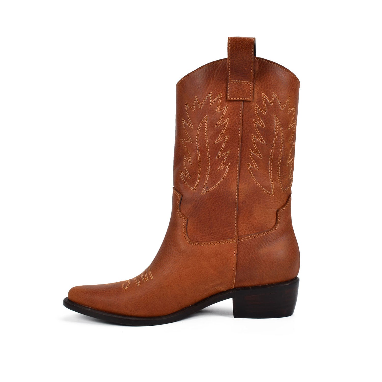 Add a classic western flair to your wardrobe with the Juana Tan Genuine Leather Cowgirl boots. Crafted with genuine leather, this sleek design is sure to turn heads. The leather upper provides superior durability, while the leather sole provides optimal comfort and cushioning. Perfect for making a statement in winter, spring, summer or fall!