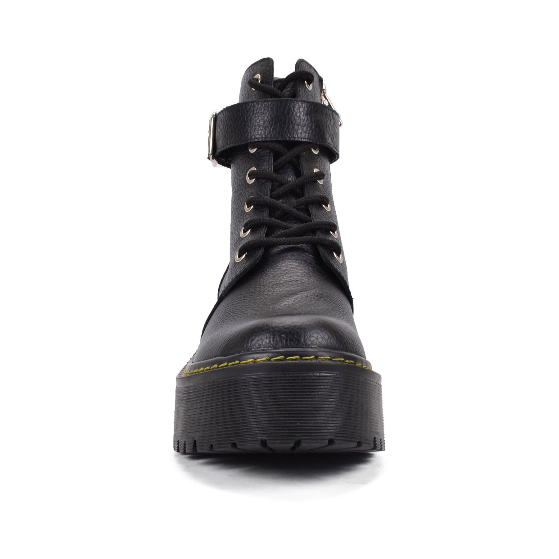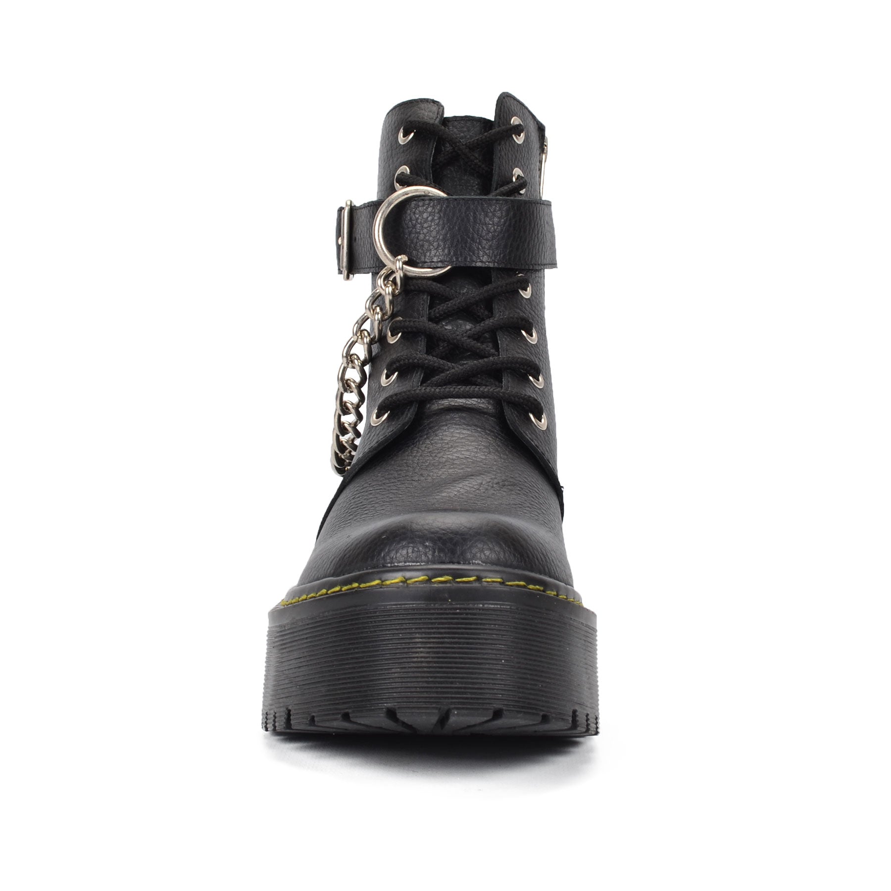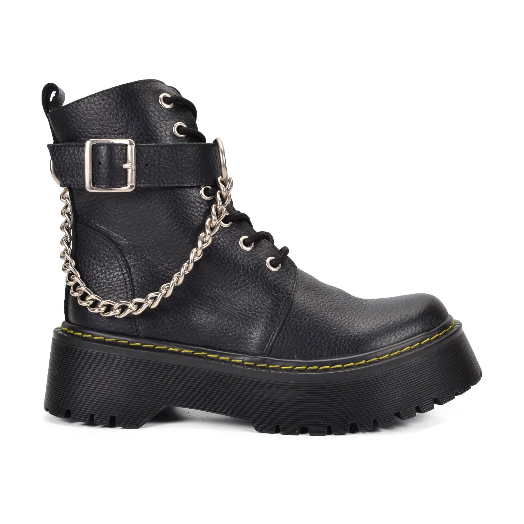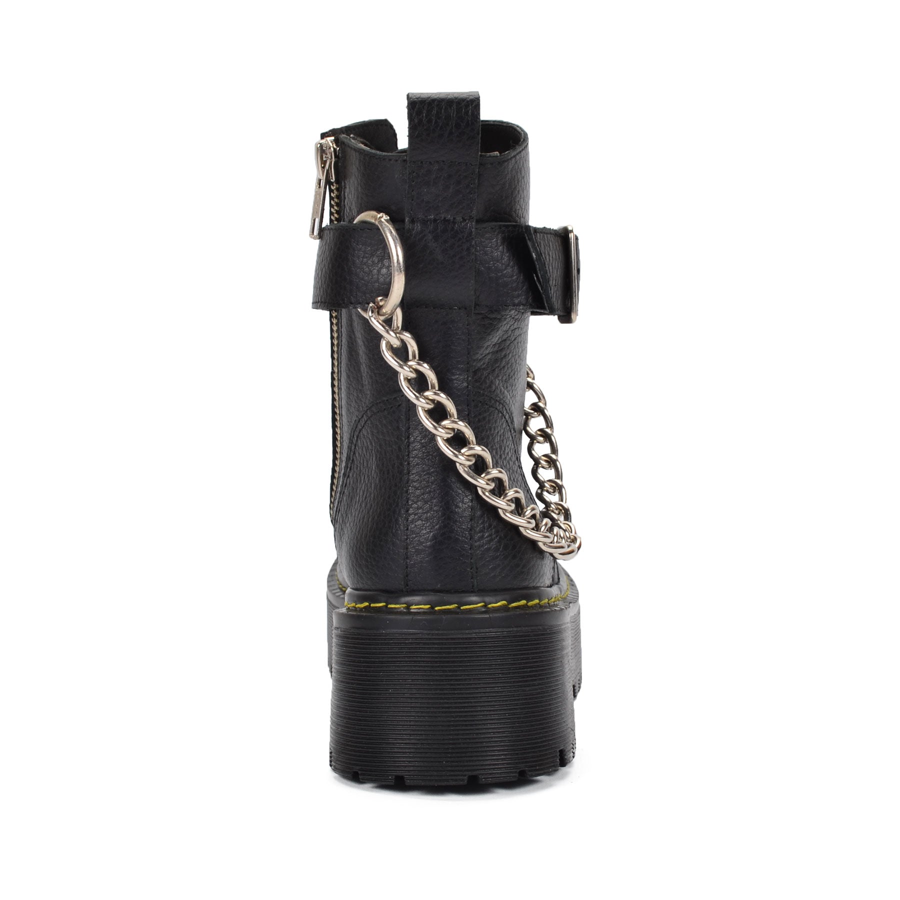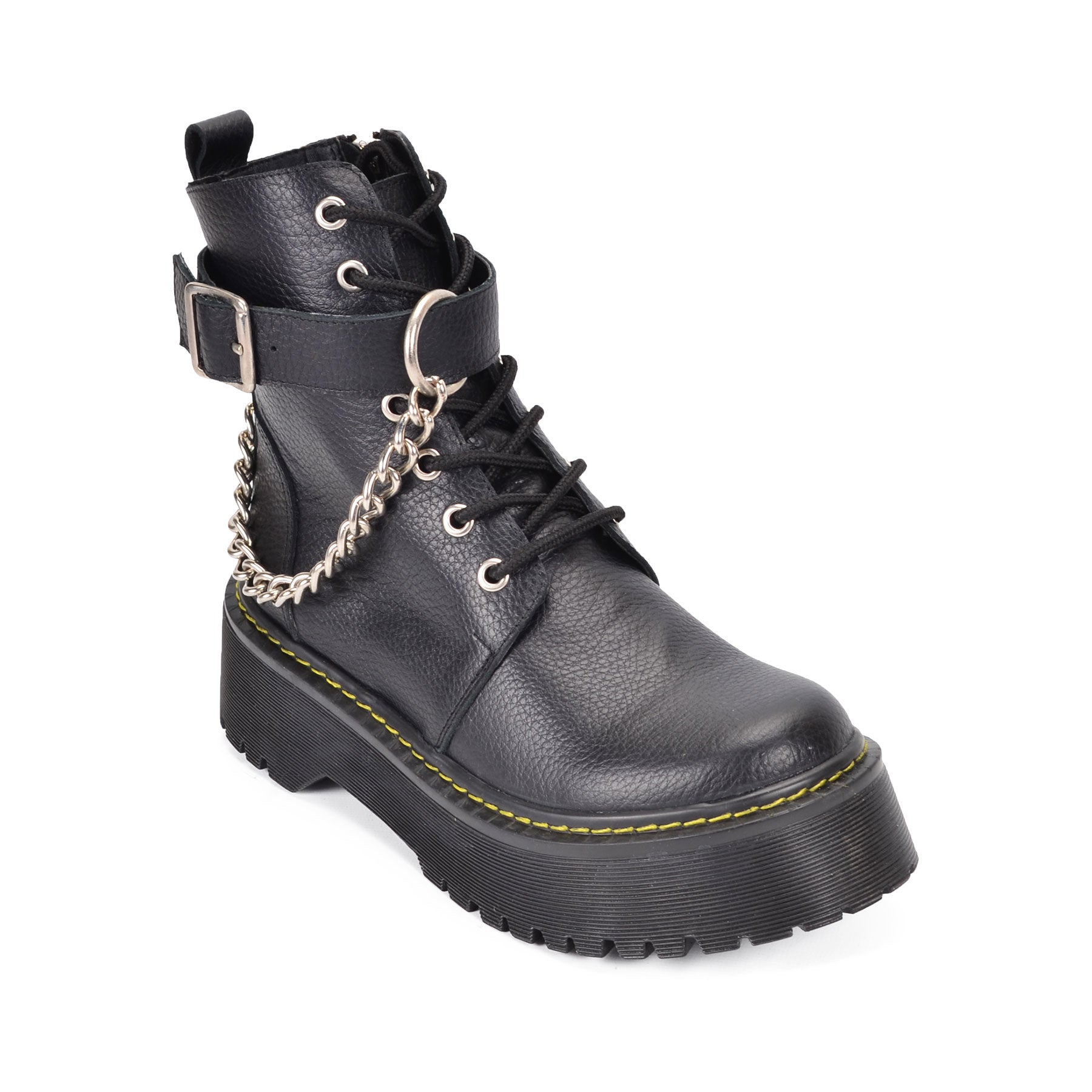 The KATE 3 IN 1 Laced combat boots feature a sena Genuine Leather (engraved) upper. Its garnishing and nickel chain are removable in case you are going for a classier style. The side zipper provide a better fitting. The sole is made of TVR for extra lightness, with a heel height of 2 inches and 5.5 inches of leg length. Kate will be your favorite convertible boot!