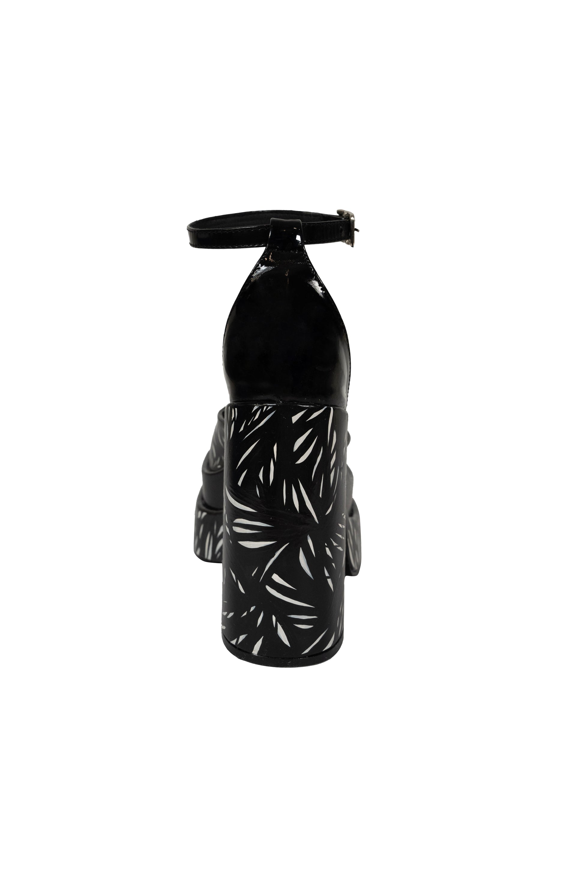 Qatar Black | Patent Genuine Leather Double Platform," the ultimate statement heels for a bold summer look. These striking black sandals feature a high-gloss patent leather finish and a dramatic double platform design that adds height and flair. The sleek ankle strap with a chic buckle ensures a secure fit, while the towering block heel provides stability and style. Perfect for nights out or special occasions, the Qatar Black heels effortlessly combine elegance and edgy sophistication, making them a must-have for your summer wardrobe.