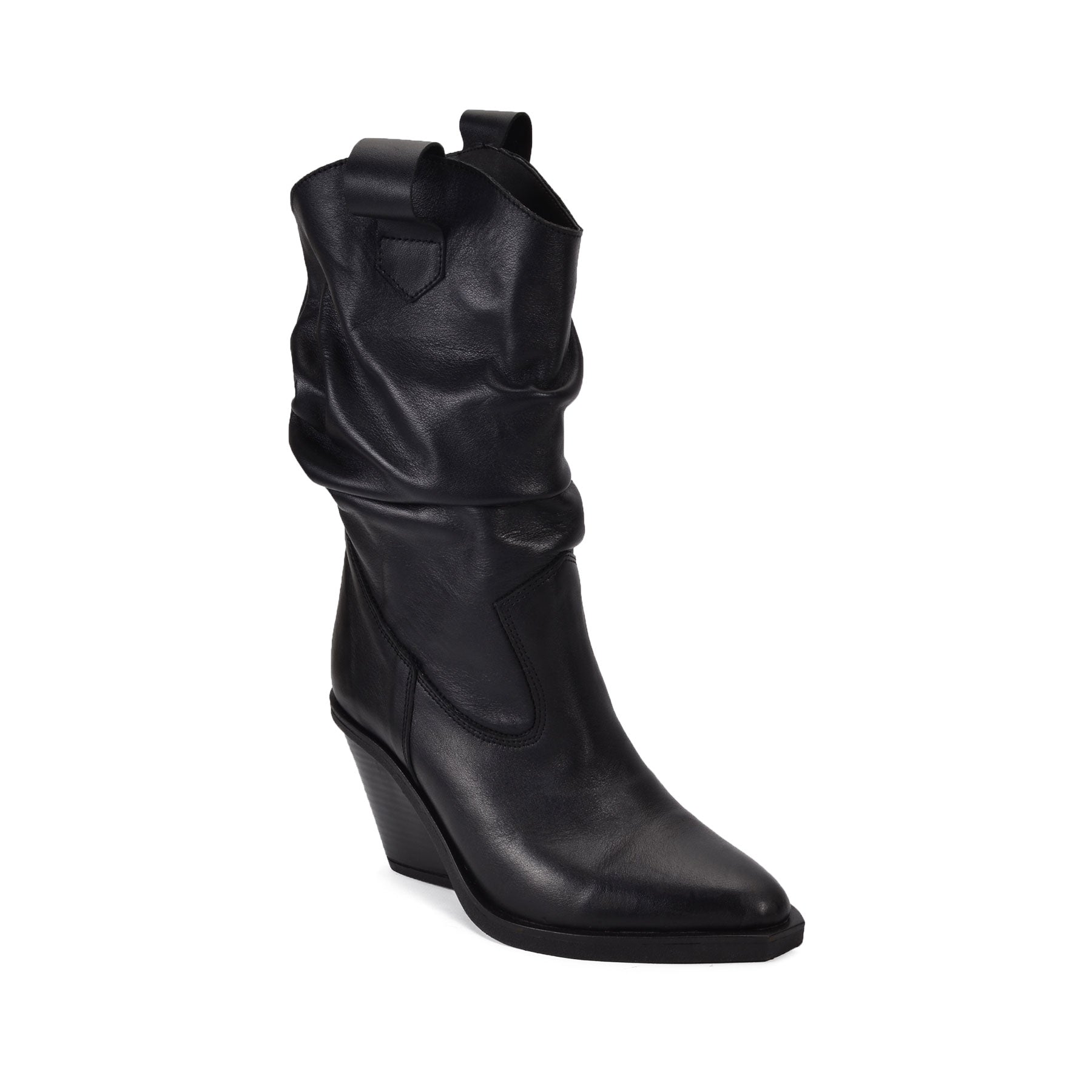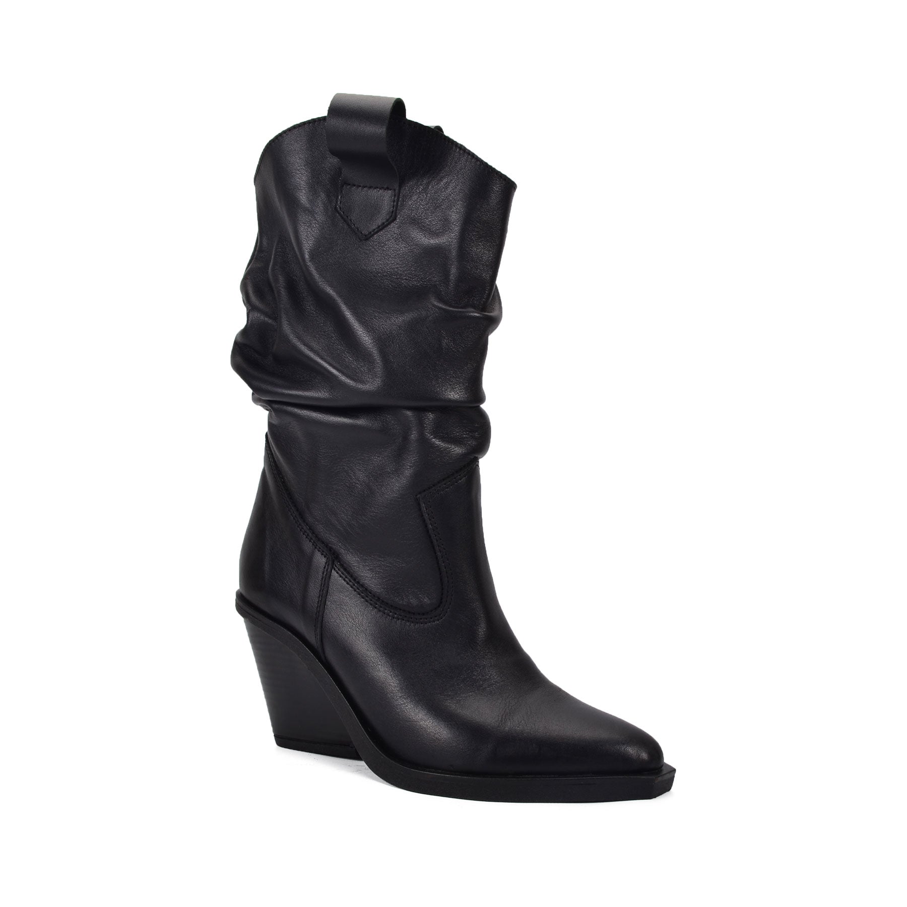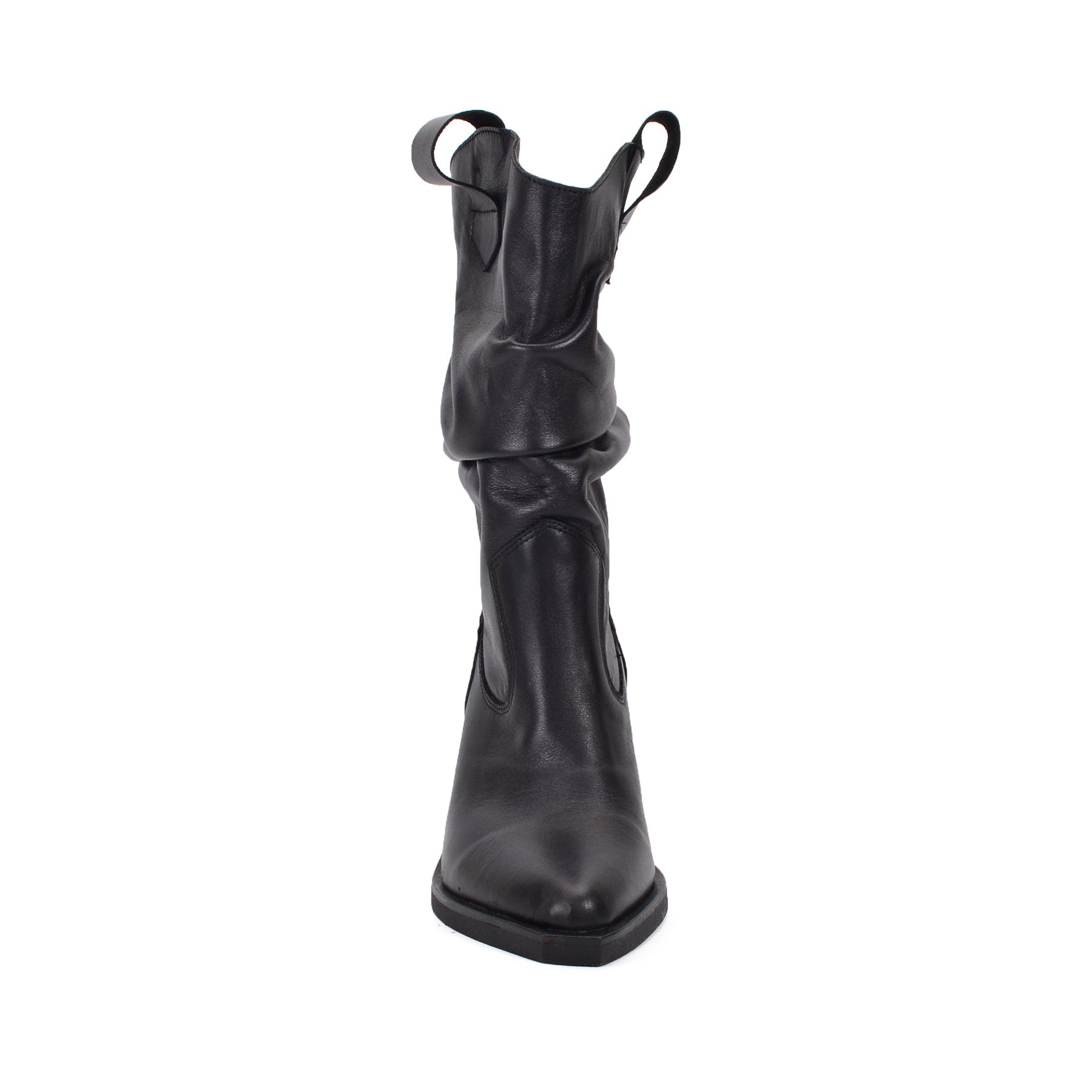 VEXTI, the perfect boots to add a bold touch to your summer, fall, winter or spring wardrobe. These sleek black Genuine Leather boots feature a slouched design and a comfortable mid-height heel, combining rugged style with a hint of sophistication. The pull-on tabs and smooth leather finish make them easy to wear and versatile, perfect for pairing with dresses, skirts, jeans or shorts. Stand out this season with the unique and fashionable VEXTI boots, designed to elevate any outfit with their edgy elegance.