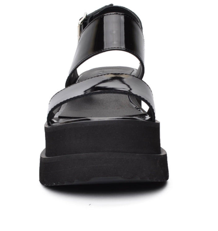 Whakan , the must-have platform sandals for a chic and contemporary summer style. These black Genuine Leather sandals feature sleek, glossy straps that offer a sophisticated look. The adjustable ankle strap with a shiny buckle ensures a secure and comfortable fit, while the chunky platform sole provides both height and stability. Perfect for pairing with both casual and dressy outfits, Fergie sandals effortlessly elevate your summer wardrobe with their modern and fashionable design. Step out in style and confidence with the versatile and trendy Fergie sandals.